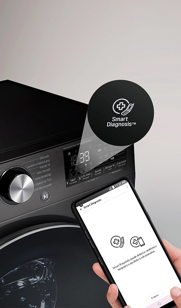 *Se requiere un teléfono inteligente compatible con Android 7.0 o posterior o iOS 12.0 o posterior para la descargar la aplicación ThinQ™. Se requiere conexión de datos de teléfono/ Wi-Fi para su uso.