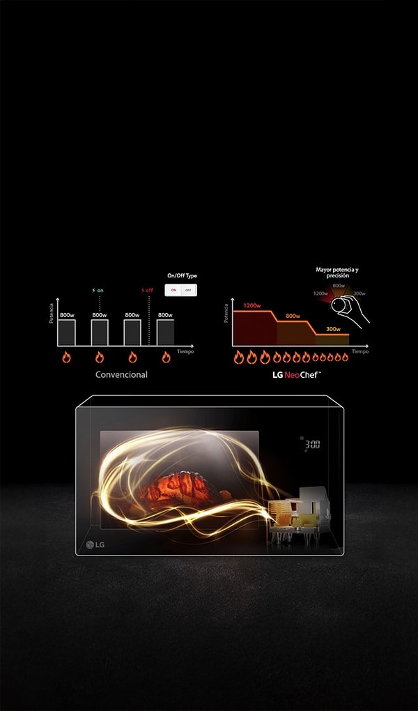 *Muestra: Modelo LG Solo (NeoChef™: MS32XX vs. Convencional: MS404)