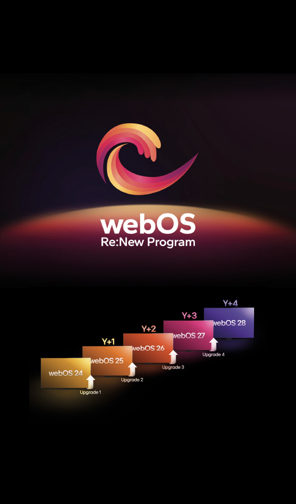 *El webOS Re:New Program brinda soporte para un total de cuatro actualizaciones durante cinco años a partir de la versión preinstalada de webOS, y la programación de las actualizaciones varía de fin de mes a comienzo de año.